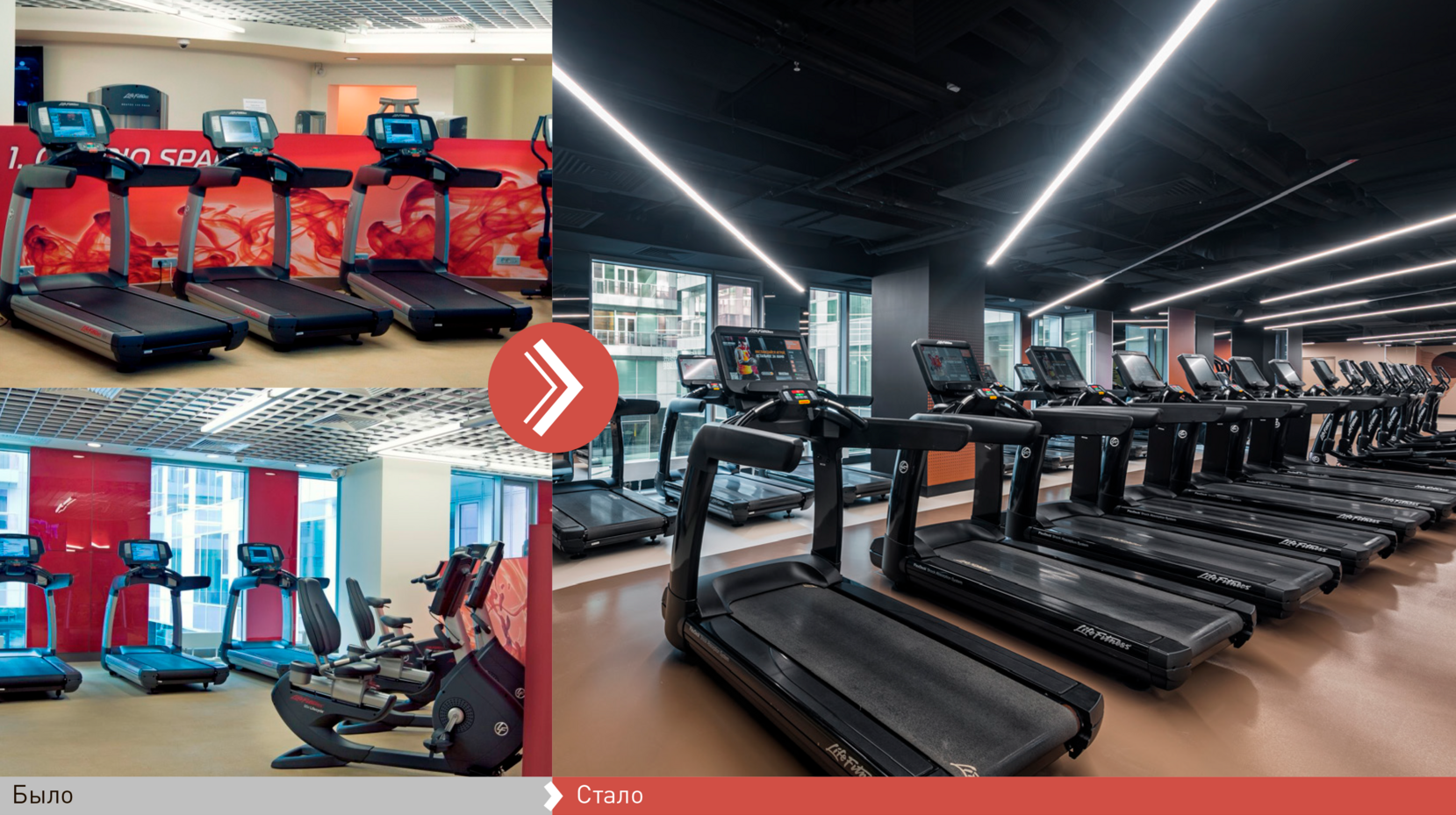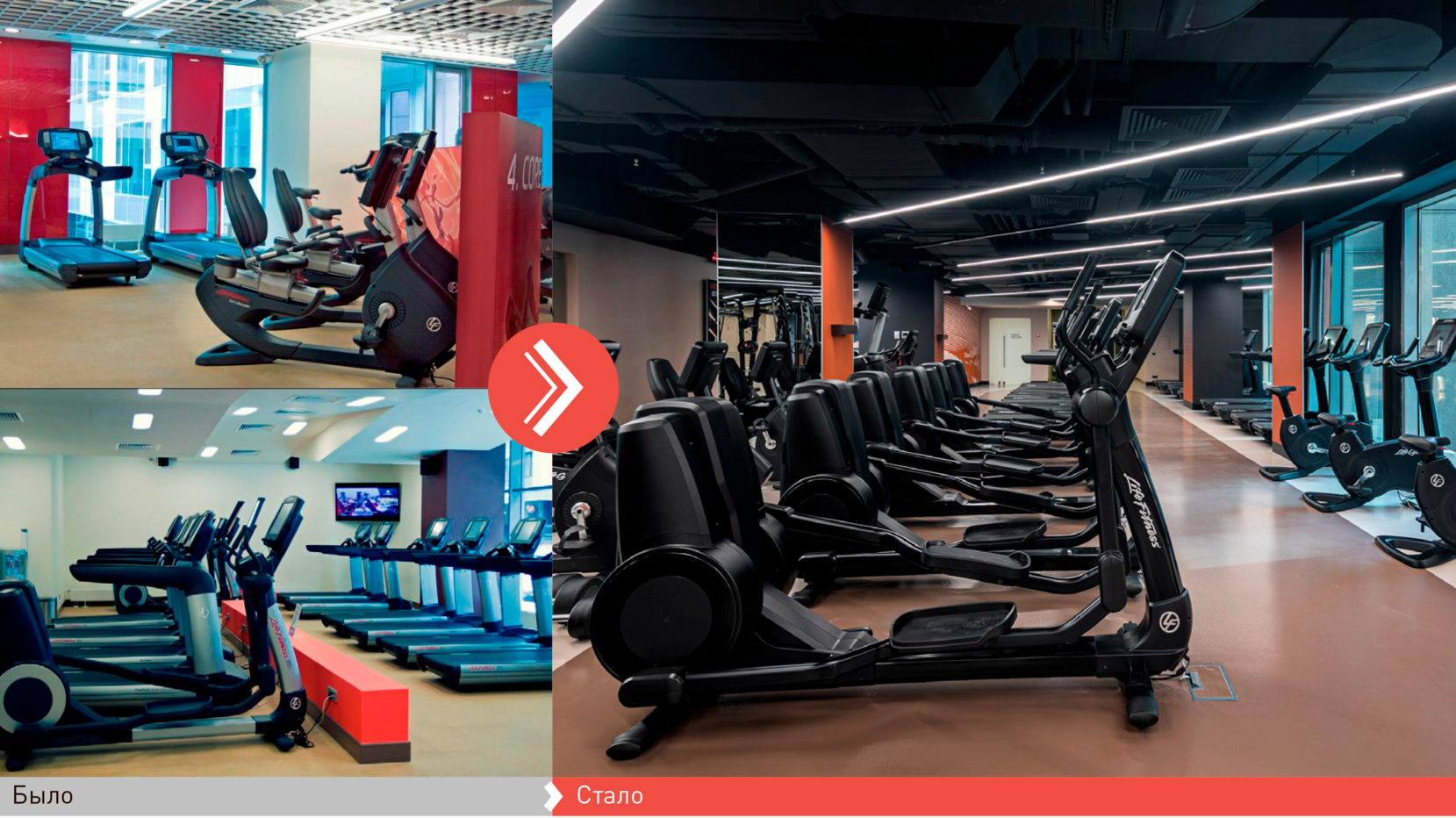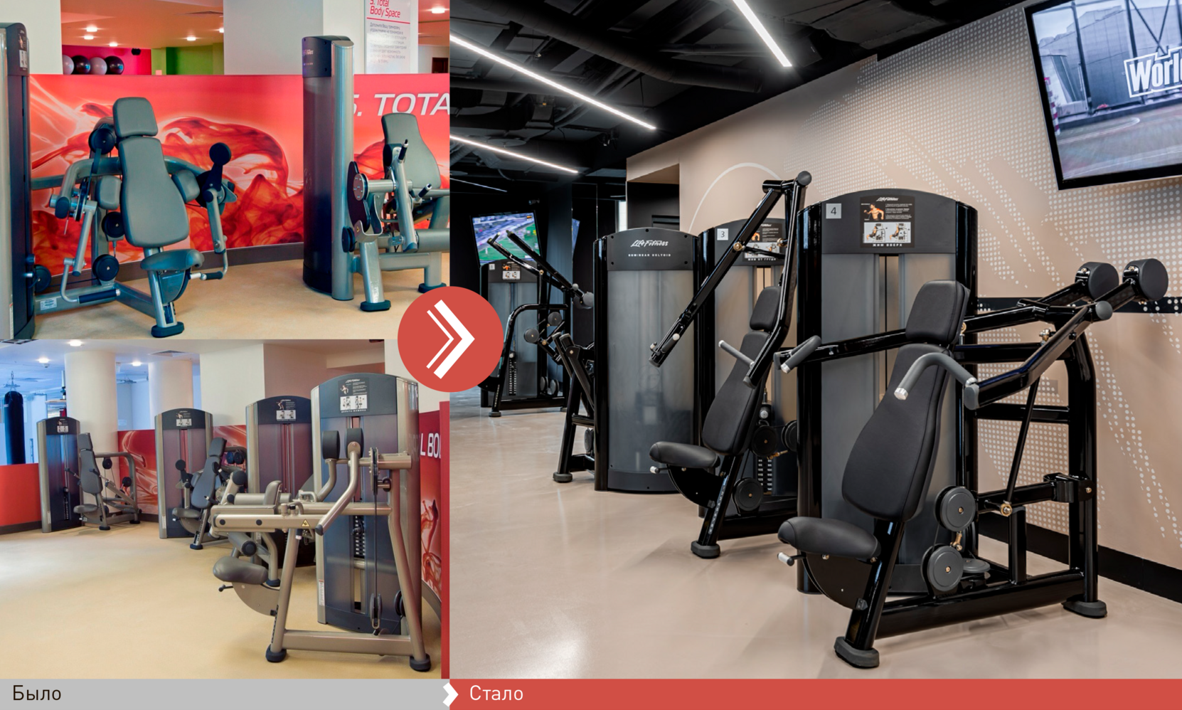 В стековых тренажерах были заменены запасные части и декоративные элементы. Полностью заменена обивка сидений, рамы излечены от сколов и коррозии, профессионально подготовлены под покраску и перекрашены. Кожухи тренажеров покрыты матовым лаком.